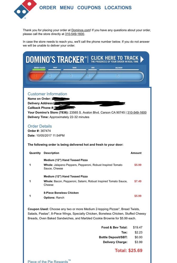 Domino's Pizza Carson Menu (Update 2025)
